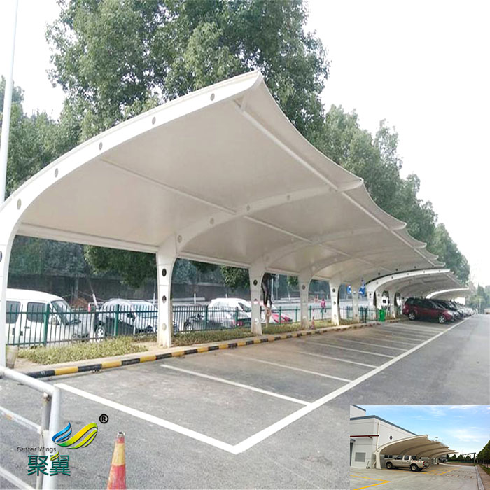 膜結構車棚是修建構造中最新發(fā)展起來的一種形式,自從膜構造在國外已逐步應用于體育修建、商場、展覽基地、交通服務設施等大跨度修建中。膜構造車棚具有杰出的環(huán)保性、透光性、自清洗性,膜材外表選用PVDF涂層、或二氧化鈦涂層,具有較好的隔熱作用,對太陽熱能可反射掉70%,膜材自身吸收了17%,傳熱13%,而透光率卻在20%以上,通過10年的太陽光直接照耀,其輝度仍能保存70%。假如本地會呈現(xiàn)颶風,那么盡量挑選金屬原料車棚,從而有著較強的抗壓性,以及抵抗性。因而保證強度較高。停放車輛的時間,愈加安全可靠。因而咱們能夠依據(jù)氣候日向,進行合理的挑選。