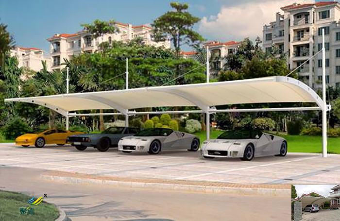 3、膜結構車棚經濟性:研究表明,長期露天停放的車輛,性能損耗速度比車棚內停放車輛快一倍。而采用車棚膜結構更能真正呵護您的愛車,減緩您愛車的老化速度。從經濟角度來說,投入不多卻大大延長您愛車的壽命。