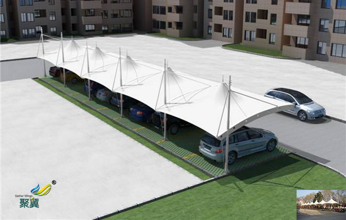 膜結構車棚制作的過程中應該注意很多的方面。首先呢,應該注意測量數據它的精密度,對數據分析時的準確性。再就是在膜結構車棚制作時一定要選擇比較好的陽光板來封頂,從而達到對停靠的車輛良好的保護,保護其不受到陽光的洗禮。同時還具有防腐蝕的特性。另外在膜步結構選擇時也一定要非常的謹慎,膜布它的決定因素是在膜結構車棚制作時顏色的選擇,厚度來共同決定的.