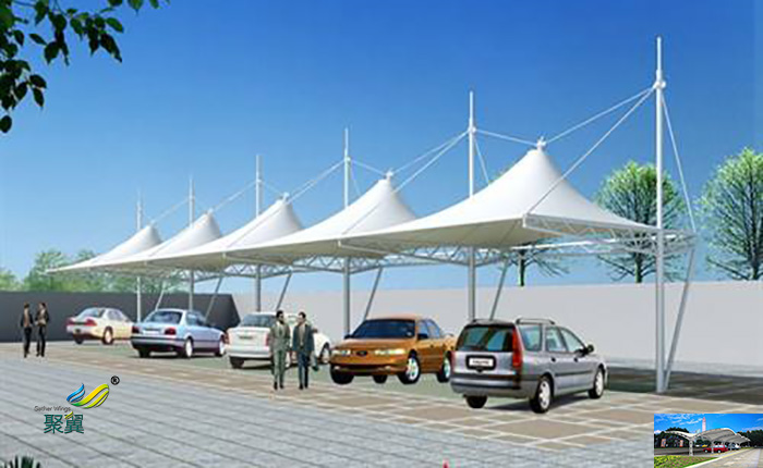 3.膜結構停車棚大跨度。沒有柱子的空間。