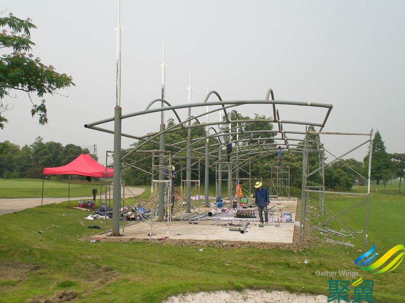 上海青浦高爾夫練習場膜結構遮陽雨棚骨架,表面處理采用