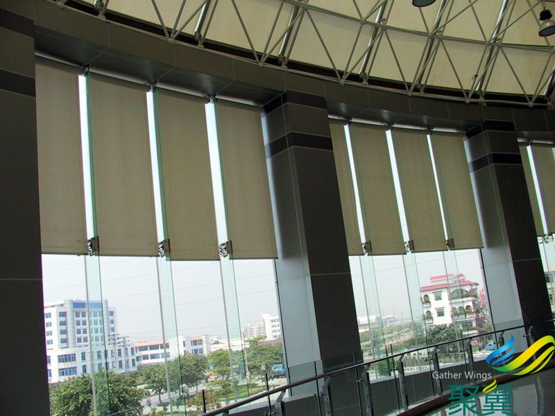 玻璃幕墻側(cè)面(立面)遮陽棚:室內(nèi)電動卷簾遮陽:見下圖參考示意圖3