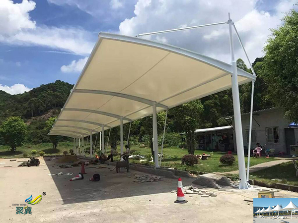 詳細>>浙江戶外小區鋼膜結構停車車棚施工方案廠家