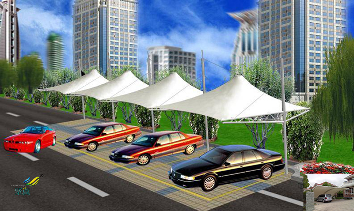 詳細>>浙江廣場汽車停車棚景觀張拉膜結構廠家工程圖片設計