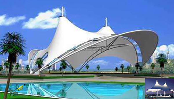 詳細>>深圳膜結構室內張拉膜傘看臺、景觀棚小品材料施工效果圖