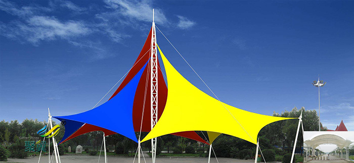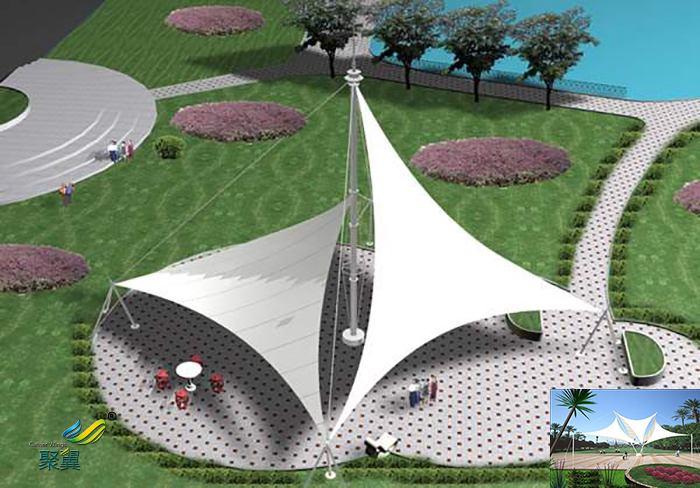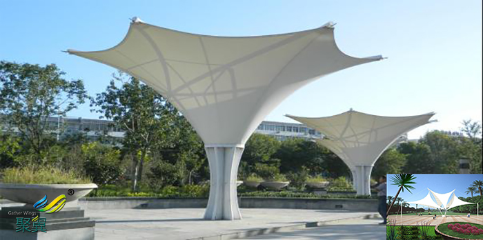 詳細(xì)>>鄭州膜結(jié)構(gòu)室內(nèi)張拉膜傘、景觀小品景觀棚施工效果圖多少一平米安裝