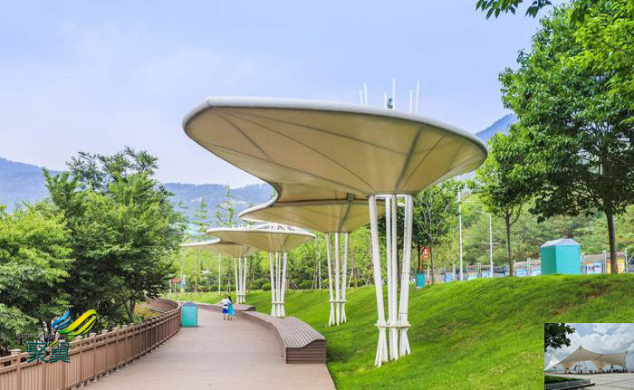 詳細(xì)>>深圳膜結(jié)構(gòu)車棚張拉雨景觀棚膜傘、景觀小品圖片設(shè)計(jì)材料公司