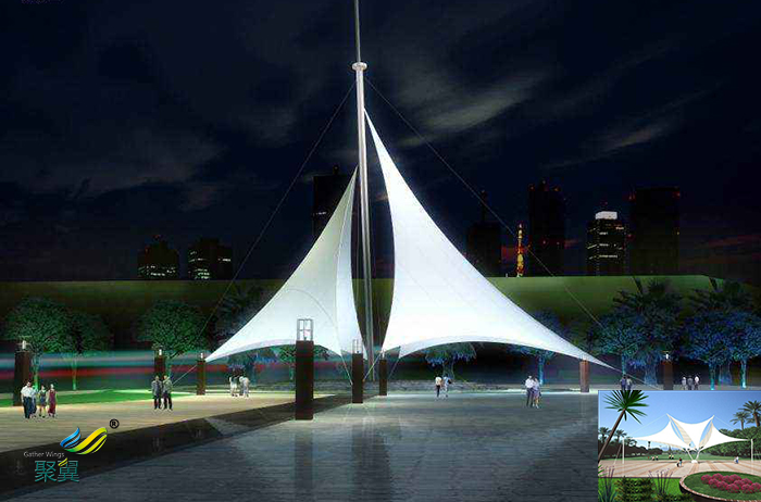 詳細(xì)>>張拉膜結(jié)構(gòu)膜傘、景觀小品施工方案