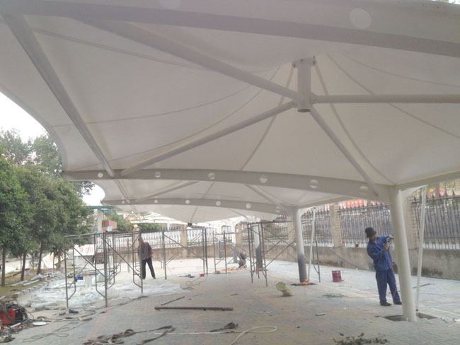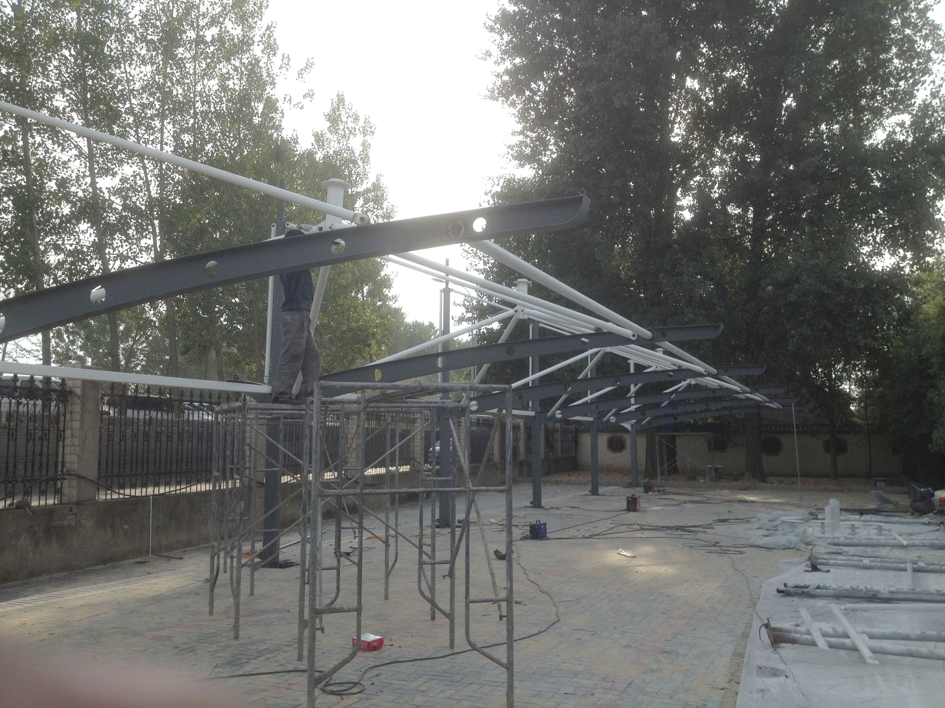 安裝細(xì)節(jié):主體為鋼構(gòu)焊接,采用主框架與部分結(jié)構(gòu)同步安裝施工,油漆現(xiàn)場(chǎng)作業(yè)完成。膜布廠內(nèi)加工成品現(xiàn)場(chǎng)安裝細(xì)節(jié)處理。需膜結(jié)構(gòu)車棚可以咨詢我司,詳情電話:4008-613-119(客服熱線)