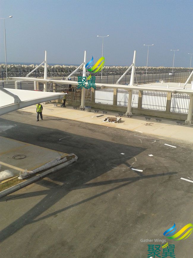 斯里蘭卡膜結構車棚材料選用了進口結構建筑材料。車棚骨架,表面處理采用進口船用底漆,炳烯酸聚氨酯面漆。
