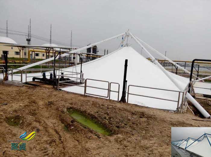 污水池加蓋進行池體和膜材的選擇后,選擇合適的設(shè)計方案顯得尤為重要,因為好的設(shè)計方案可以從物料,材質(zhì)等方面降低施工費用。
