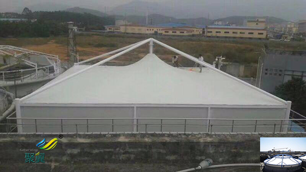 1.密封性能好;污水池加蓋的膜材具有抗拉性能強,密封性好的特點,可以將廢氣密封在一個密閉的空間,阻止廢氣與空氣的接觸,從而造成二次污染。