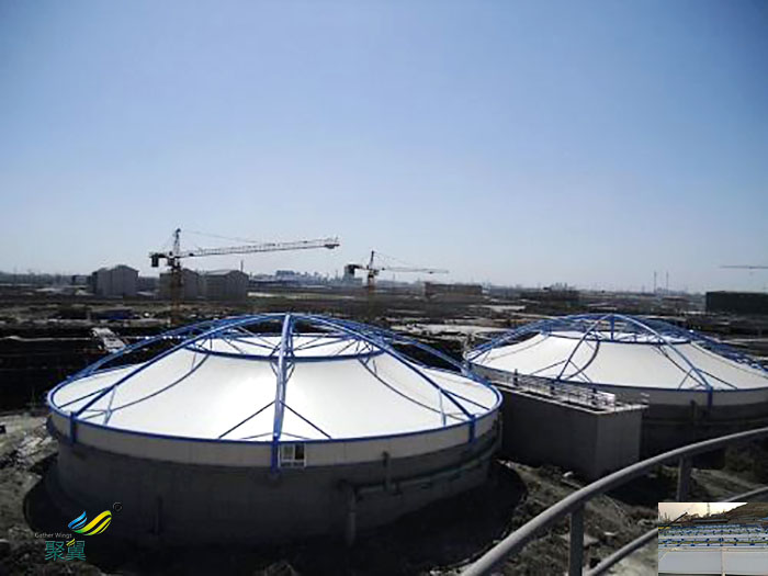 1.密封性能好;污水池加蓋的膜材具有抗拉性能強,密封性好的特點,可以將廢氣密封在一個密閉的空間,阻止廢氣與空氣的接觸,從而造成二次污染。