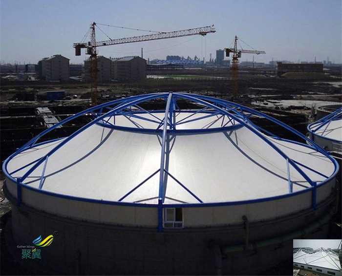 1.污水池加蓋密封性能好;污水池加蓋的膜材具有抗拉性能強,密封性好的特點,可以將廢氣密封在一個密閉的空間,阻止廢氣與空氣的接觸,從而造成二次污染。