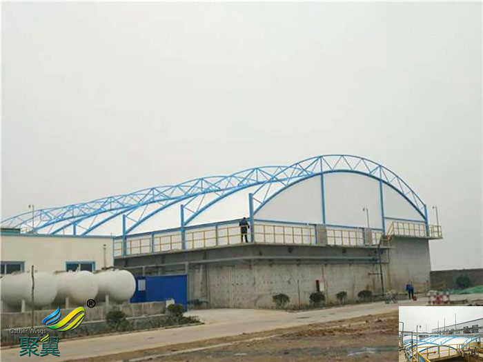 污水池加蓋膜結構充分體現了藝術美,自然美,技術美,而且與周圍建筑環境也比較融合,也不限于空間施展難度大和地理位置狹小的地方。加工施工制造安裝快。