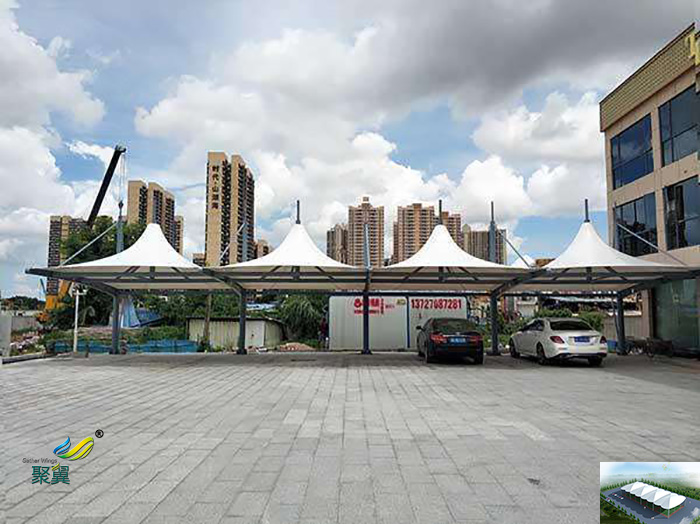• 浙江廣場汽車停車棚景觀張拉膜結構廠家工程圖片設計