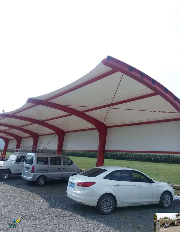 4.膜結構車棚透光率約為13,且能將太陽光轉化為陰影少的滋潤擴散光,x13bxx可以得到與室外同樣的物體本來色調。