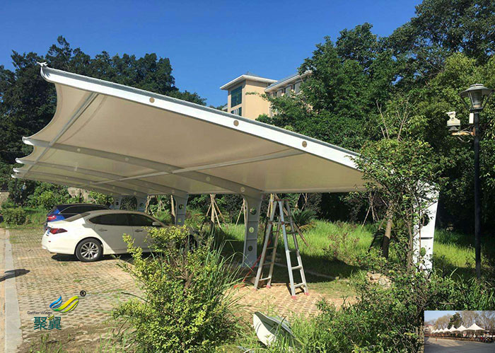 膜結構停車棚,自重輕,具有良好的受力特點—成為大跨度空間結構的主要形式之一。停車場的規劃和建設成為現代城市規劃的重要組成部分,變的越來越重要。膜結構輕巧、別致的造型在停車場及候車廳的建設中擔當了重要角色,除了滿足防風雨、防日曬等基本功能外,并有較好的標識招攬效果,展現了人們個性化的一面。