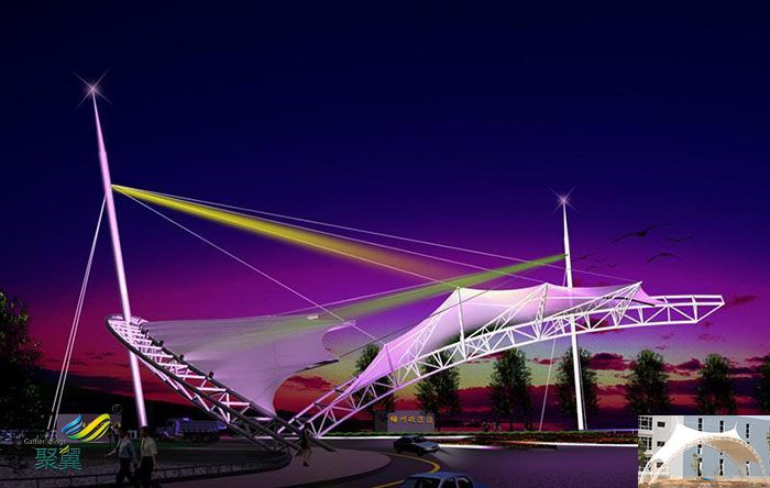 三、舞臺膜結(jié)構(gòu)景觀效應(yīng)性:文藝舞臺膜結(jié)構(gòu)新穎別致的膜建筑造型與傳統(tǒng)建筑相比可以突出其獨(dú)特性,而且也不會與周圍環(huán)境顯得突兀,整體造型適時適地融合周邊景致,與周圍環(huán)境相適應(yīng),相得益彰。特別是結(jié)合夜間的燈光設(shè)計,會呈現(xiàn)出一個如夢境般的風(fēng)景線。
