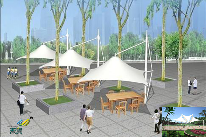 • 安徽室內張拉膜雨棚停車棚傘、景觀小品設計圖片施工安裝