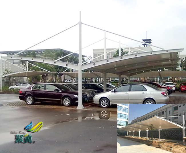 膜結(jié)構(gòu)車棚節(jié)省了本錢。任何一個裝置停車棚的客戶,必定最想的就是怎么節(jié)省本錢,膜結(jié)構(gòu)停車棚就正好滿足了這點。膜材日常維護(hù)費用少,壽數(shù)長,并且易拆、易裝,這些都在很大程度上減少了費用。