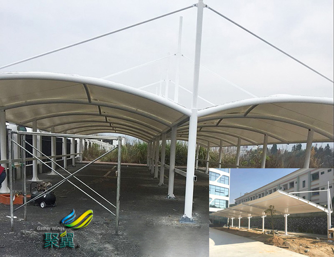 膜結(jié)構(gòu)車棚這樣的膜結(jié)構(gòu)建筑一般采用鋼結(jié)構(gòu)支撐。阻燃涂料是我國鋼結(jié)構(gòu)常用的防護涂料。目前大多數(shù)類似的建筑都沒有涂防火涂料。還有一種穩(wěn)定性較好的方法:膜結(jié)構(gòu)車棚結(jié)構(gòu)處理,使膜表面靠近電纜下方,火災(zāi)煙霧先面向膜表面,使電纜下方有額外的保護層,使鋼框架不受高溫的影響。