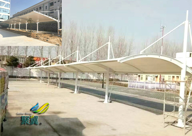 其次現如今的膜結構車棚比以往的停車棚完全不一樣,不僅在設計上大大突出了人性化的,在使用功能上也提高了一個臺階,也有很多城市將膜結構車棚納入城市規劃的行列,這一舉措不僅給市民出行帶來了很大一部分的優勢,同時也為綠色出行打下了堅實的基礎。