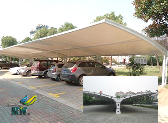 個性滿足:可依需求設計、生產個性膜結構車棚,外觀典雅,并提供相應配套設施。膜結構車棚美觀是很多城市建設都會考慮到的問題,膜結構車棚具有的個性化特點,就很好的解決這方面的問題了。