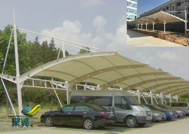 膜結構車棚構造其實很簡單,主要是利用高強度膜結構的布和支架來搭建起來的簡單建筑,利用膜結構車棚材料良好的張性覆蓋在支架上,從膜結構車棚的結構形式上看,與以前是車棚有很大的不同,只要準備好材料就可以施工了。
