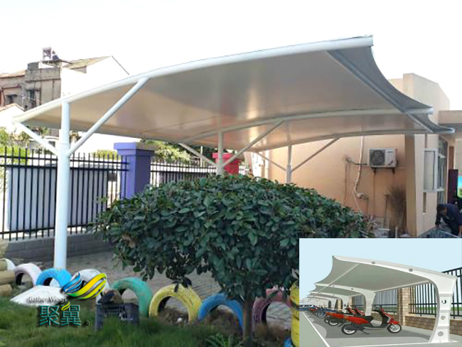 因為膜結構車棚工程的施工技術質量要求高,故需挑選技術諳練、任務心強。有經歷的施工員、班組長組織各項工作,并簽訂施工組承包范圍、質量技術要求、工期進度、安全目標等任務書。按照膜結構車棚工程需求,勞動力要公道調配,根絕窩工現象。