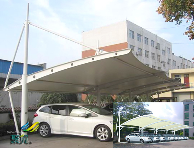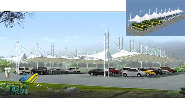 膜結構車棚荷載態分析:張拉膜結構車棚自身重量很輕,僅為鋼結構的1/5,混凝土結構的1/40;因此膜結構車棚對地震力有良好的適應性,而對風的作用較為敏感。此外還要考慮雪荷載和活荷載的作用,由于目前觀測資料尚少,故對膜結構車棚的設計通常采用安全系數法。