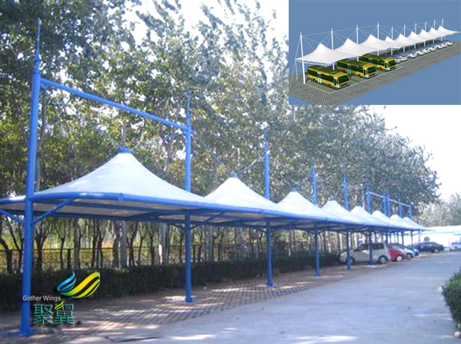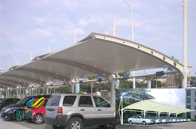 高強(qiáng)度的膜材出現(xiàn),再加上張拉技術(shù)的應(yīng)用,使膜結(jié)構(gòu)車棚抵御風(fēng)雨的能力是一般雨蓬不可比擬的。有的車棚采用 性膜材,可使用三、四十年。特別是遇到劇烈的暴風(fēng)雨天氣,膜結(jié)構(gòu)建筑巍然不動(dòng),毫發(fā)不損。