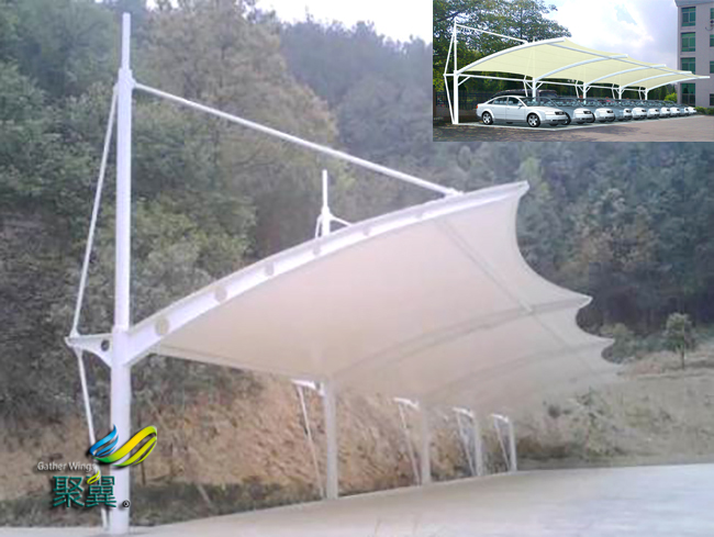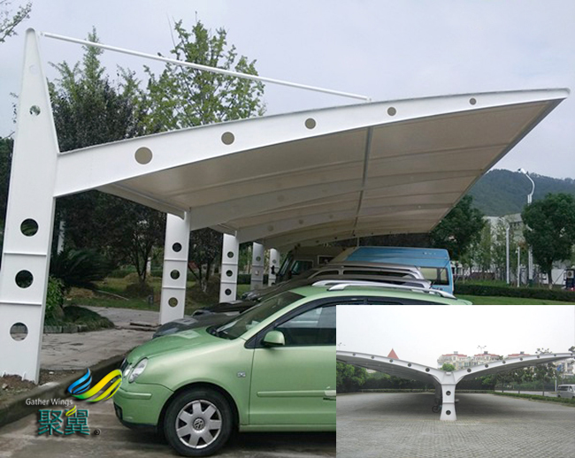 膜結構車棚膜材料不僅具有優良的抗沖擊性能、電性能、熱穩定性和耐化學腐蝕性,而且膜結構車棚機械強度高,加工性能好。玻纖PVC建筑膜材這種膜結構車棚膜材開發和應用比較早,通常規定PVC涂層在玻璃纖維織物經緯線交點上的厚度不能少于0.2mm,一般涂層不會太厚,達到使用要求即可。