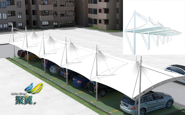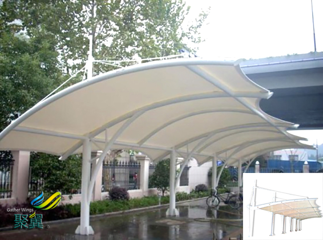 (1)膜結(jié)構(gòu)車棚雨篷面料應確保尺寸恒定、不變形。
