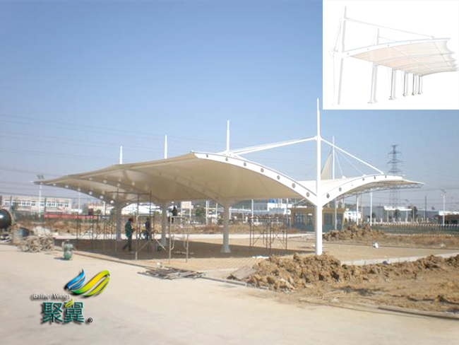 “高點(diǎn)”通常是由桅桿來(lái)提供的,也許是由于這個(gè)原因,有些文獻(xiàn)上也把結(jié)構(gòu)車棚叫做懸掛膜結(jié)構(gòu)車棚淺析購(gòu)物建筑路線的優(yōu)劣.