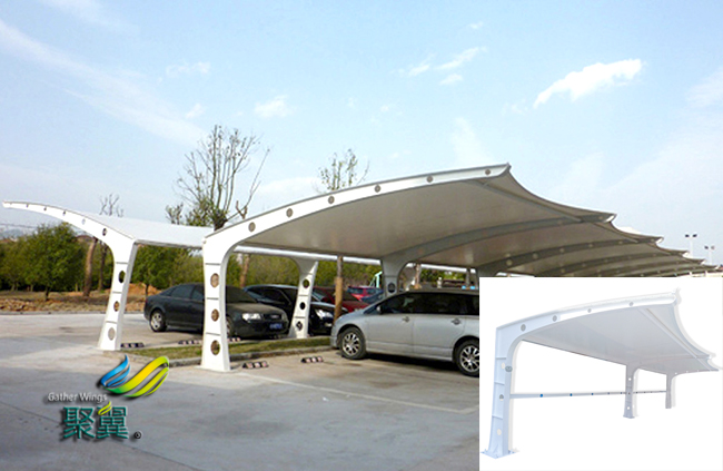 膜結構車棚未出現之前,市場主要的是鐵制車棚,鋁合金車棚,彩鋼車棚等。這些膜結構車棚都是采用金屬構件來制作,因此具有笨重,形式單調的缺點。