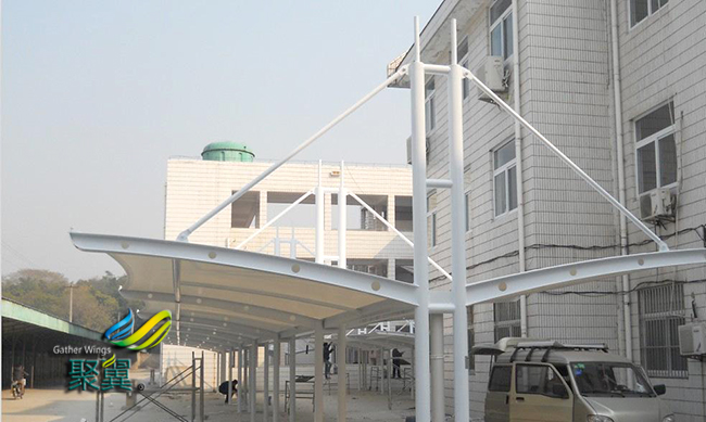 膜結構車棚是由膜材質和鋼材質一起組成的,不同的膜材質相應的功效也不同,有的側重于通光率,有的側重于造型方面,膜結構車棚結實堅固但藝術張力不是很好,所以在選擇的時候要根據自己的實際需求來選擇。