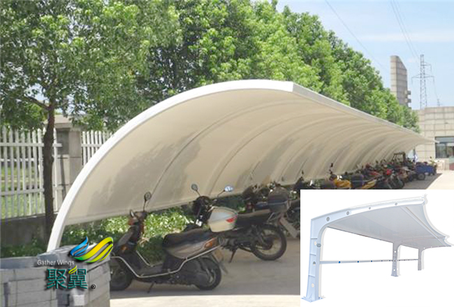 相對(duì)于膜結(jié)構(gòu)車棚來說,整體能承受的載荷會(huì)小很多,遇到劇烈的暴風(fēng)雨天氣,膜結(jié)構(gòu)車棚頂棚會(huì)和支撐件分離。而膜結(jié)構(gòu)車棚受力點(diǎn)小,單位尺寸上能承受的壓強(qiáng)高,因此在多次的實(shí)踐中,膜結(jié)構(gòu)車棚都穩(wěn)固如山。