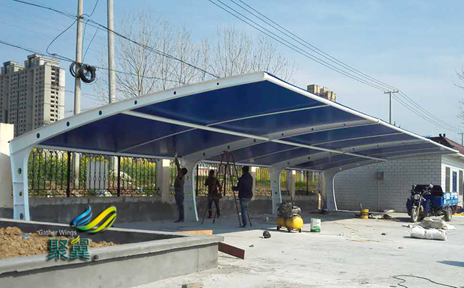 膜結構車棚安裝過程中不應發生雨水積存現象。同時應根據降雨的程度決定工程的中止和繼續。