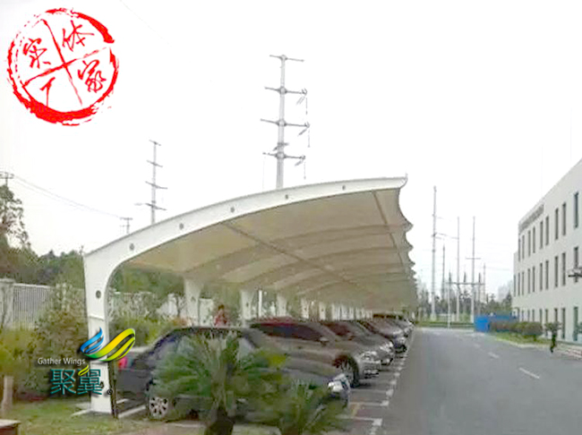 膜結構車棚與以往的舊式車棚相比,結構更加輕盈,而且在使用中比較穩固。膜結構車棚的材料使用了高分子膜結構車棚材料和支撐構件共同組成,并且能根據支撐構件的高低位置不同而呈現不同的形狀。因此在教育,商業,體育館等公共場所都有很廣泛的應用。