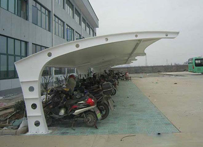 膜結(jié)構(gòu)車棚是由上面造型奇特的膜材質(zhì)和下面骨架的鋼結(jié)構(gòu)、鋼索組成的,現(xiàn)場安裝即可完成。