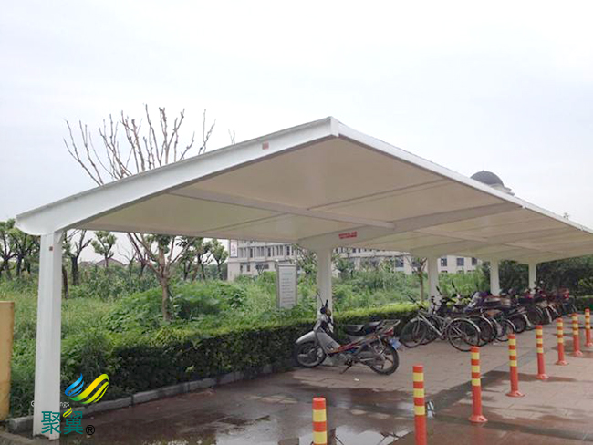 膜結構車棚鋼結構材料安裝的車棚,首先膜結構車棚鋼結構的厚度是非常大的,這樣膜結構車棚可以起到遮陽和遮雨作用,效果非常的好。所以大家大可不必擔心這個問題,可以對自行車起到很好的保護作用,除了這些優點之外,這種膜結構車棚鋼結構的還可以耐高溫,而且不會發生任何的變形。