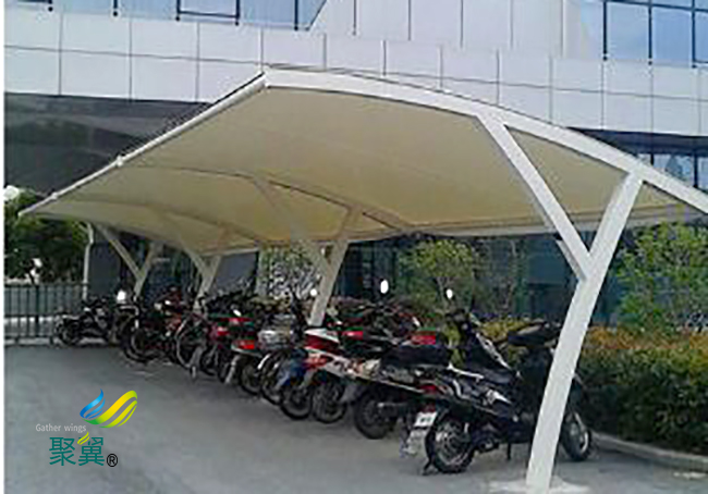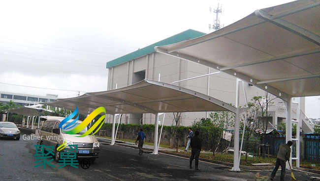 膜結構車棚工程中所有加工和制造均在工廠內完結,可削減現場施工時刻,防止出現施工穿插。與傳統車棚方法比較,膜結構車棚的施工周期至少可縮短一半,通常項目可在兩個月內竣工,施工時間不影響其他工程的施工進度。
