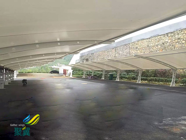 膜結構車棚的造價僅為傳統車棚造價的1/3至1/2 ,膜結構車棚張拉布局的造價依據不相同的跨度和設計方案區別較大,但與傳統車棚方法比較,膜結構車棚價錢效益比都十分顯著。