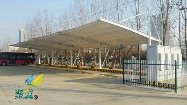 膜結構車棚新鮮客觀的外型更給人一種賞心悅目的感受,在發起市民多選用膜結構車棚自行車出行方法上可以起到必定的輔佐效果。