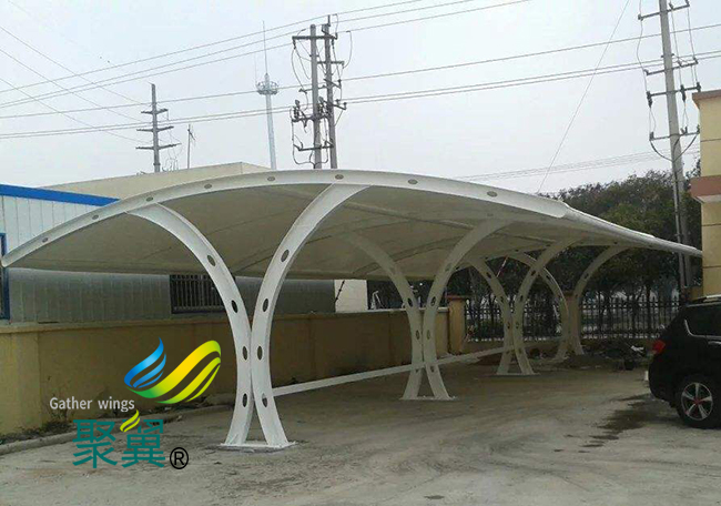膜結(jié)構(gòu)車棚自行車棚不只具有美麗的外觀、特性的外型并且其功用也對(duì)比突出,膜結(jié)構(gòu)車棚是城市綠色化建造的一大輔佐。