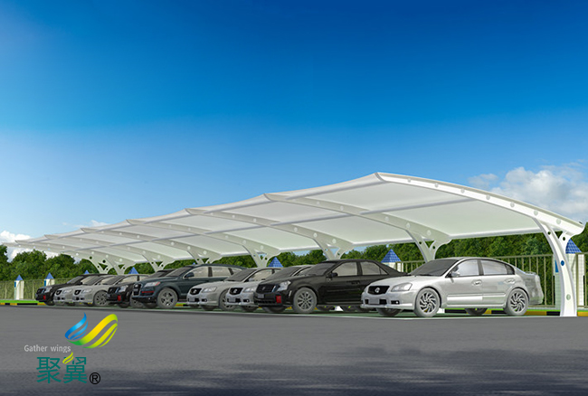 安裝膜結構車棚雨篷好處|張力膜結構車棚