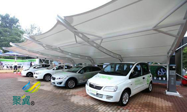 膜結構車棚張拉結構的靈活性使其可以產生很大的位移而不發生永久性變形。膜結構車棚膜材的彈性性能和預應力水平決定了膜結構車棚的變形和反應,適應自然的柔性特點可以激發人們的建筑設計靈感。