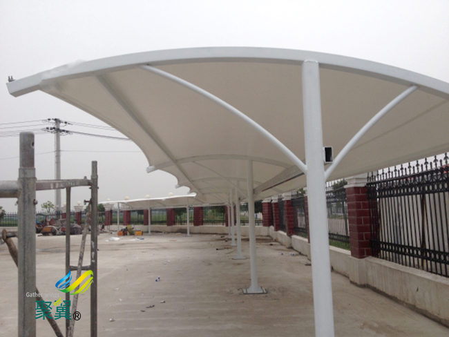 人們生當(dāng)今活提高水平,很多公共休閑場所會有很多膜結(jié)構(gòu)車棚,另外還有些停放車輛的汽車棚,停車棚等,膜結(jié)構(gòu)車棚是近年來在國內(nèi)開始流行的一種新式的車棚結(jié)構(gòu)。
