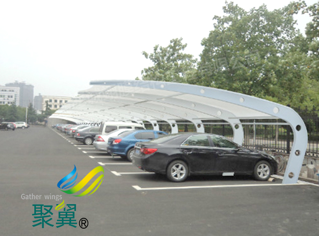 膜結構車棚柔軟的優良性能發揮到了極致,利用柔性鋼索支撐結構將膜結構車棚膜面繃緊,不斷交叉組合,使冷峻的線條形成曲面,從不同的角度看變幻著不同的圖案。那些由曲線、曲面塑造的形態比起司空見慣的矩形建筑來,膜結構車棚生動活潑,既飄逸自然,又剛勁有力,真可謂是柔中有剛,充分體現著建筑的美學藝術。